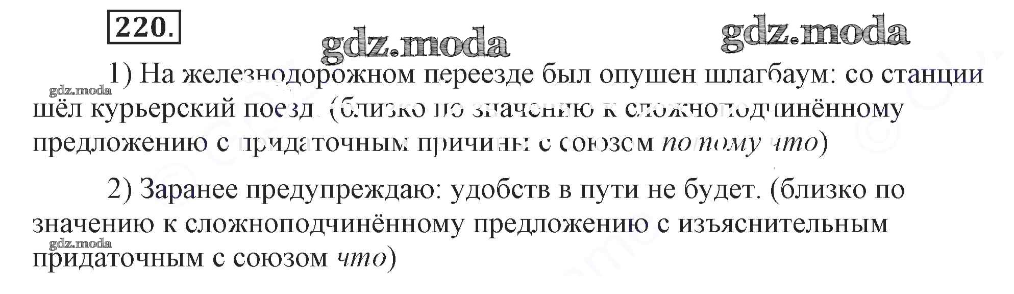 ОТВЕТ на задание № 220 Учебник по Русскому языку 9 класс Бархударов
