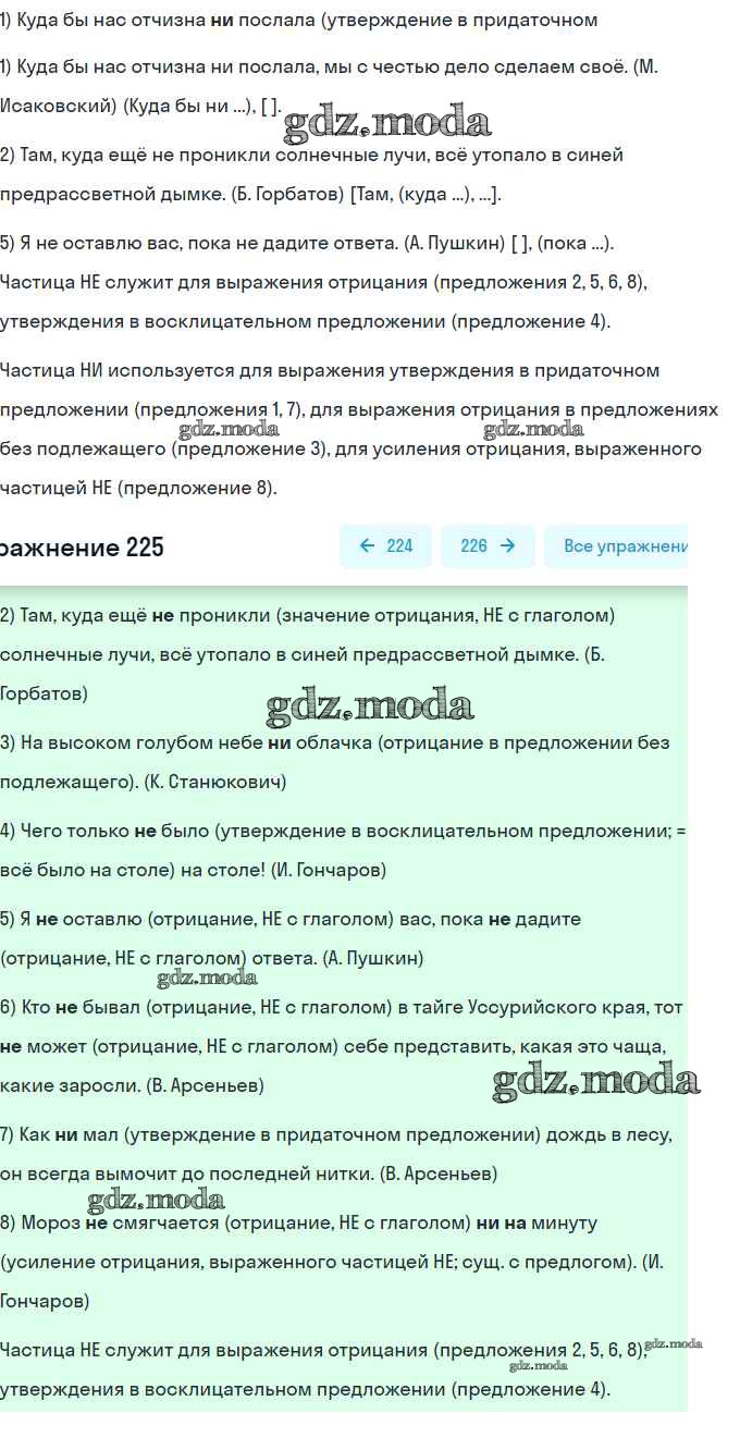 ОТВЕТ на задание № 225 Учебник по Русскому языку 9 класс Бархударов