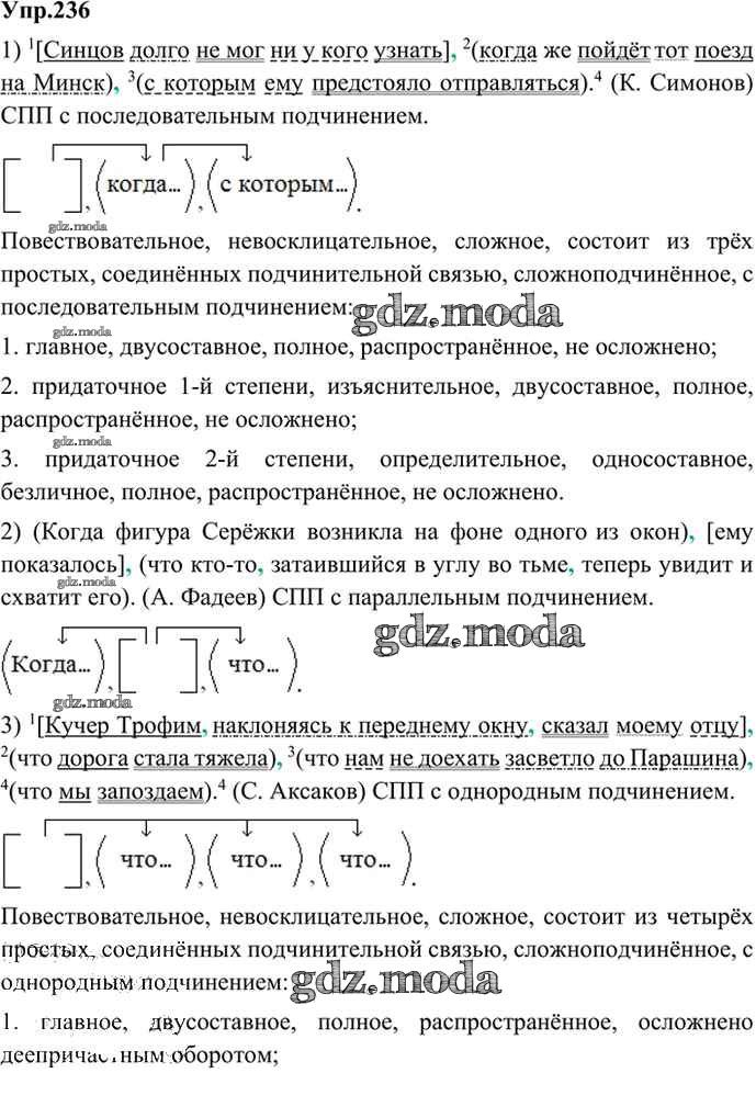ОТВЕТ на задание № 236 Учебник по Русскому языку 9 класс Бархударов