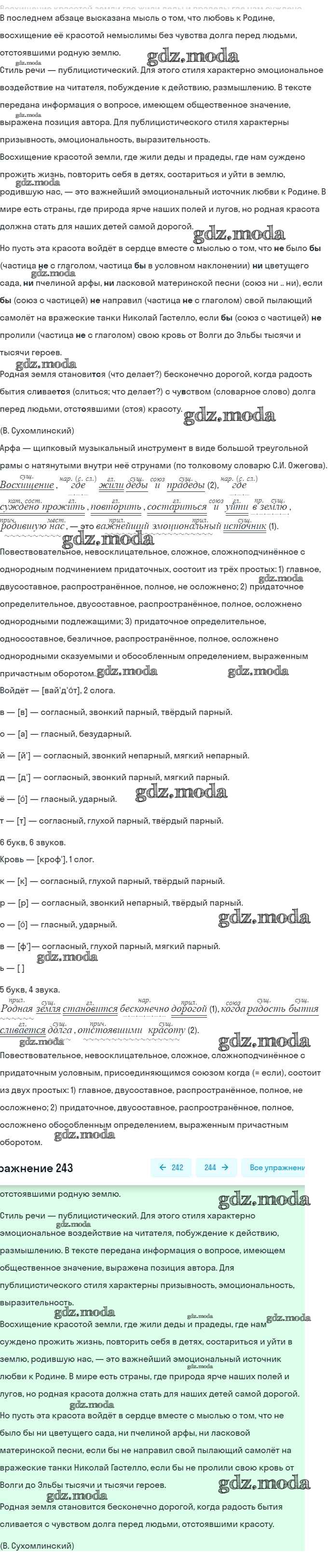 ГДЗ решение к заданию № 243 Русский язык 9 класс Бархударов С.Г. Просвещение, Просвещение 2011, 2019 ФГОС бесплатно на гдз.мода!