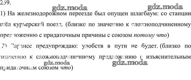 ОТВЕТ на задание № 259 Учебник по Русскому языку 9 класс Бархударов
