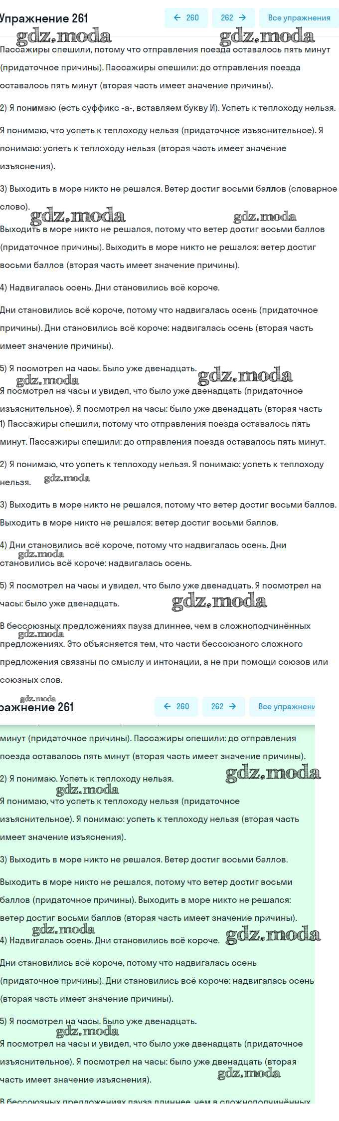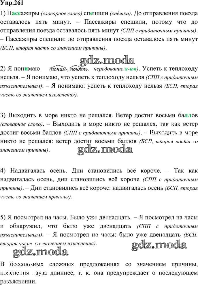ОТВЕТ на задание № 261 Учебник по Русскому языку 9 класс Бархударов