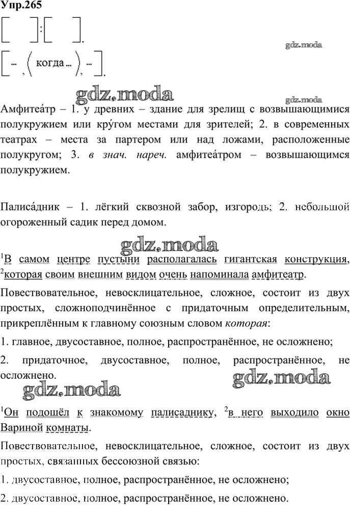 ОТВЕТ на задание № 265 Учебник по Русскому языку 9 класс Бархударов