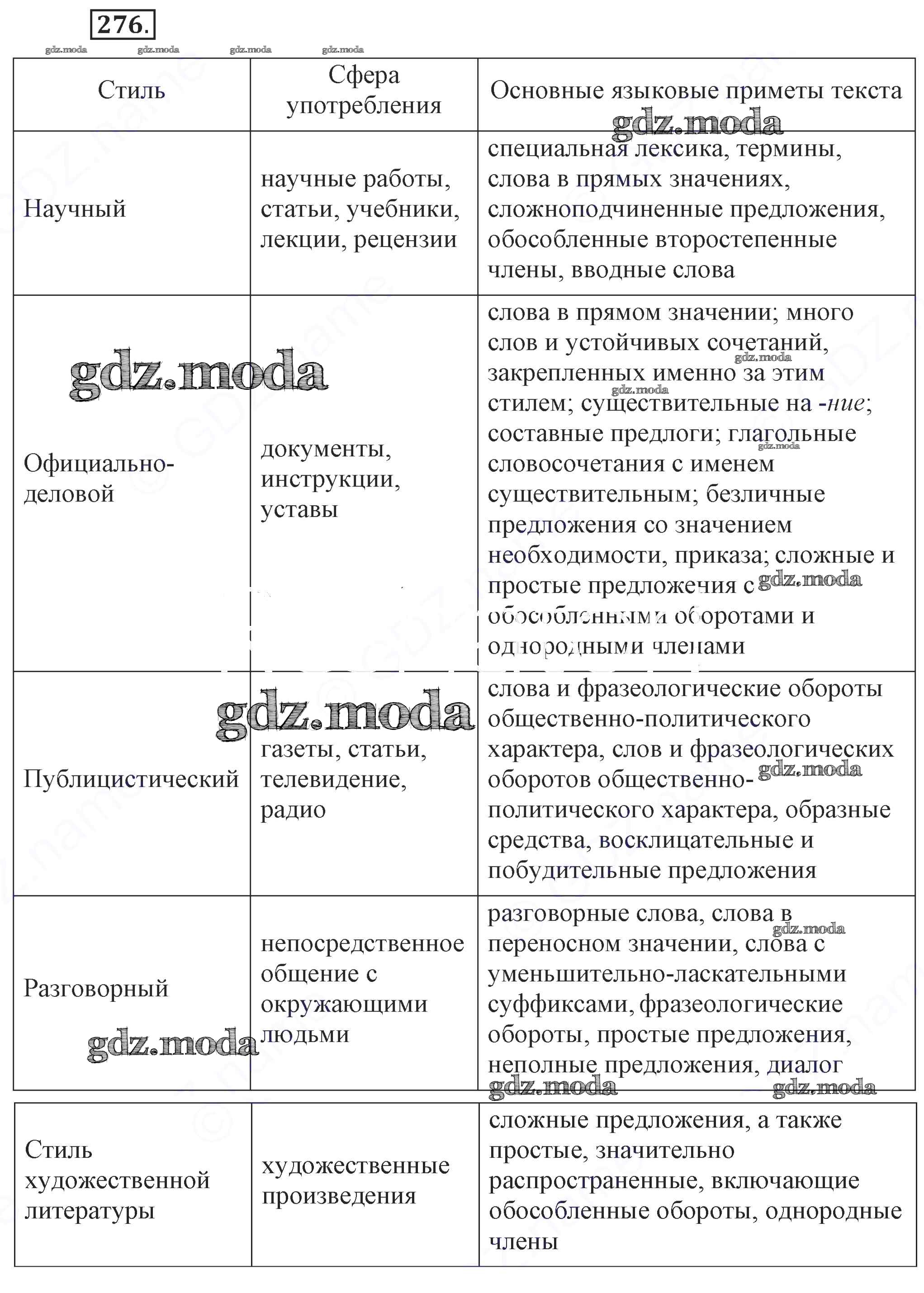 ОТВЕТ на задание № 276 Учебник по Русскому языку 9 класс Бархударов