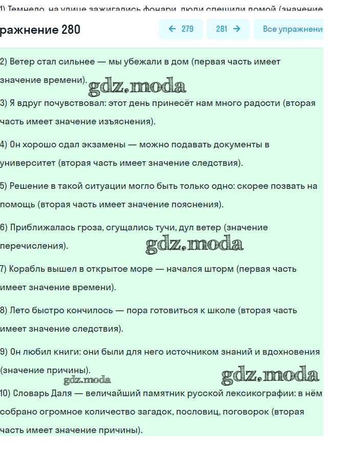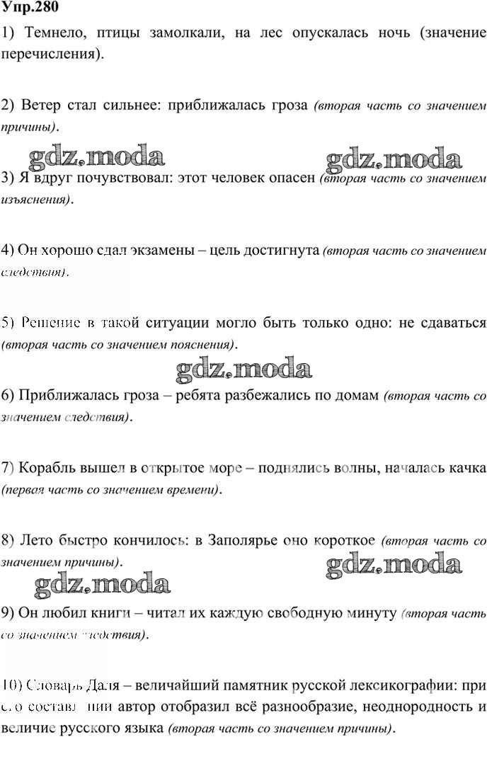 ОТВЕТ на задание № 280 Учебник по Русскому языку 9 класс Бархударов