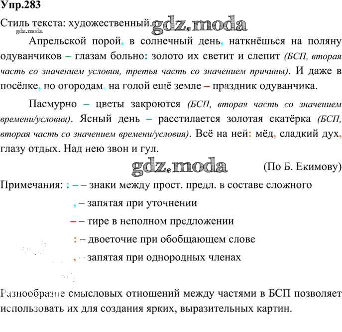 ОТВЕТ на задание № 283 Учебник по Русскому языку 9 класс Бархударов
