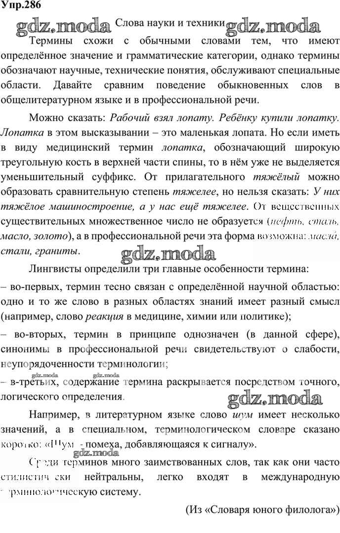 ОТВЕТ на задание № 286 Учебник по Русскому языку 9 класс Бархударов