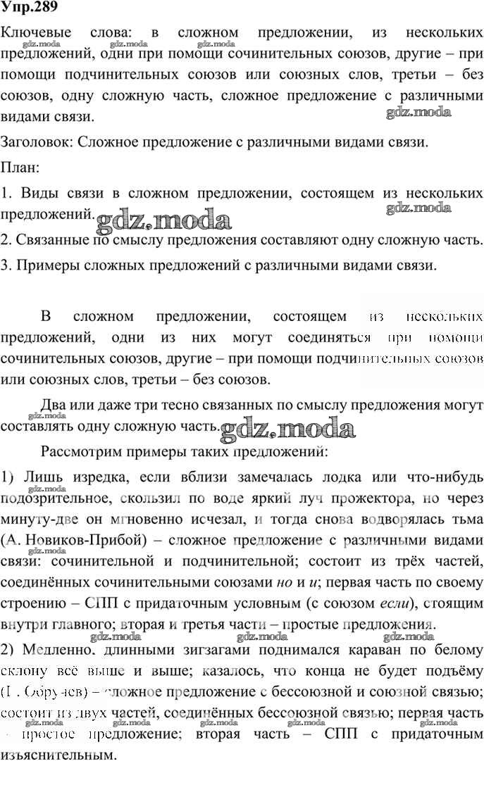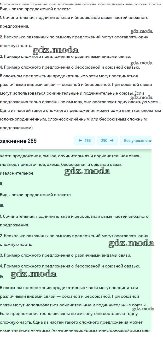 ОТВЕТ на задание № 289 Учебник по Русскому языку 9 класс Бархударов