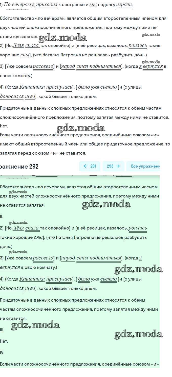 ОТВЕТ на задание № 292 Учебник по Русскому языку 9 класс Бархударов