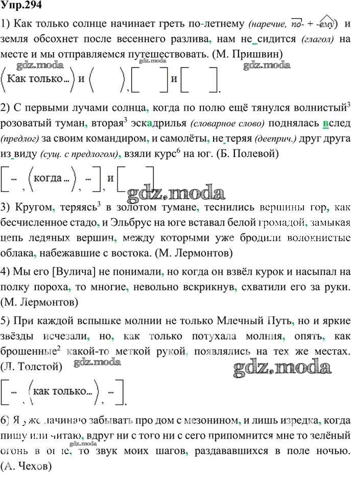 ОТВЕТ на задание № 294 Учебник по Русскому языку 9 класс Бархударов