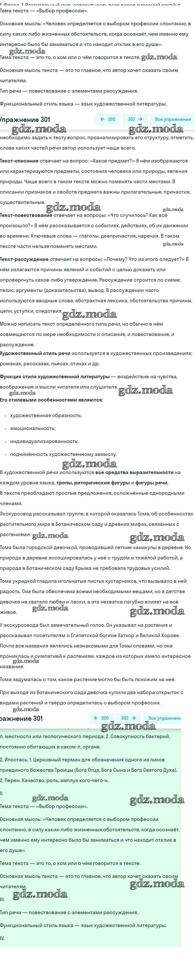 ОТВЕТ на задание № 301 Учебник по Русскому языку 9 класс Бархударов