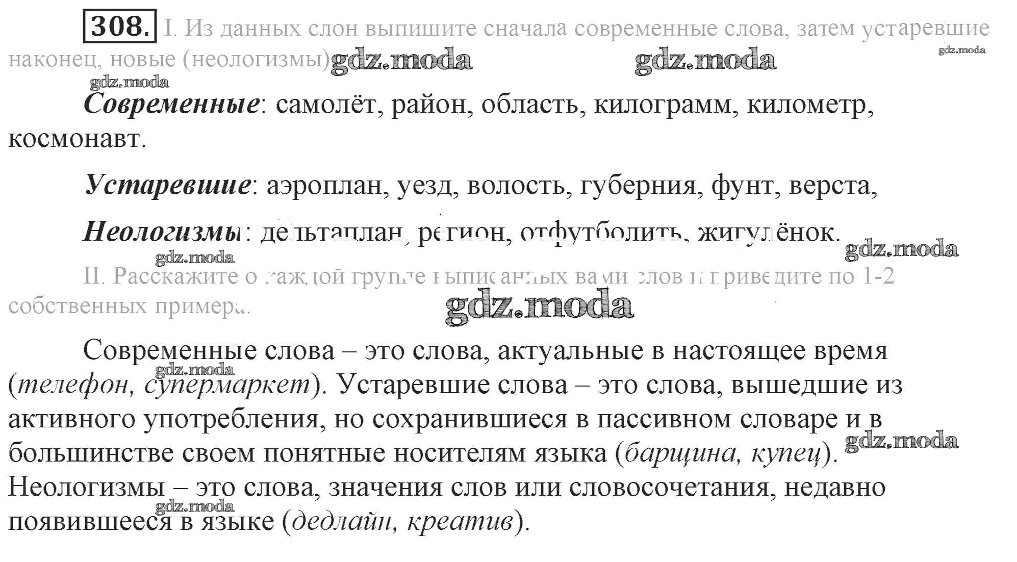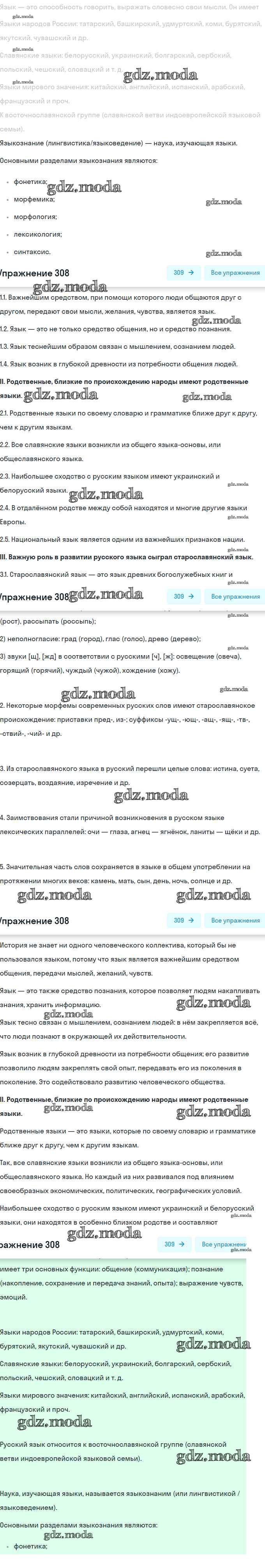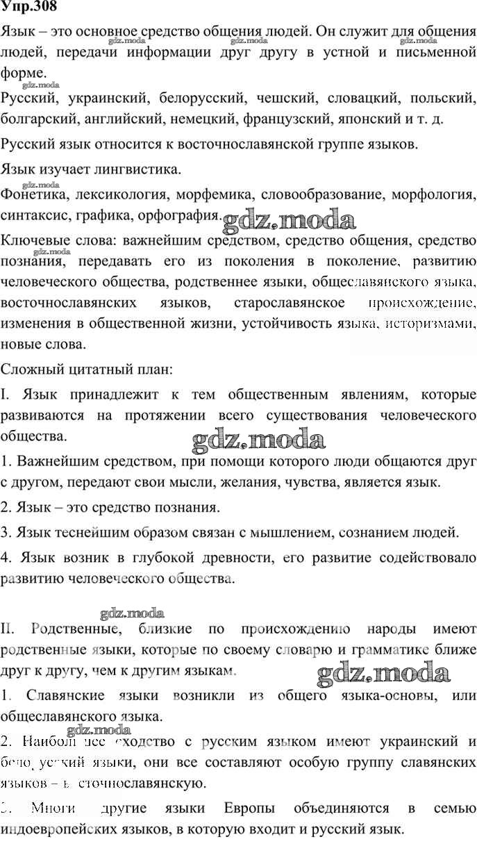 ОТВЕТ на задание № 308 Учебник по Русскому языку 9 класс Бархударов