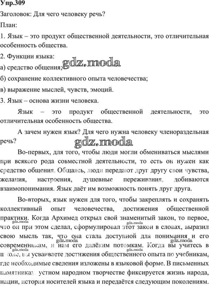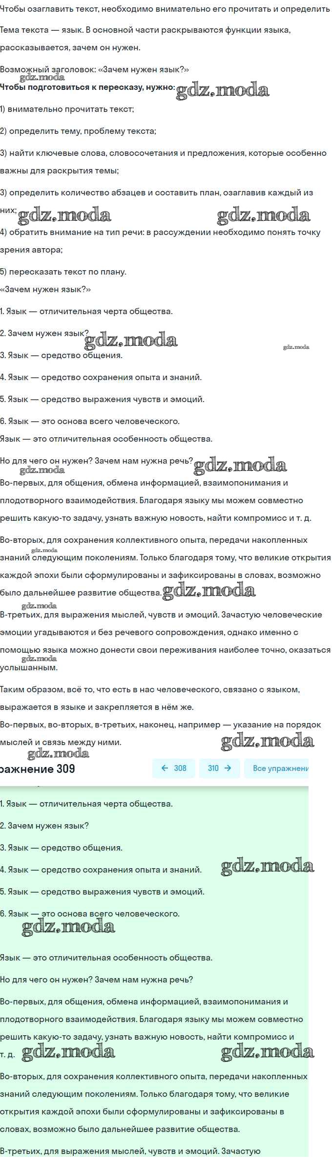 ОТВЕТ на задание № 309 Учебник по Русскому языку 9 класс Бархударов