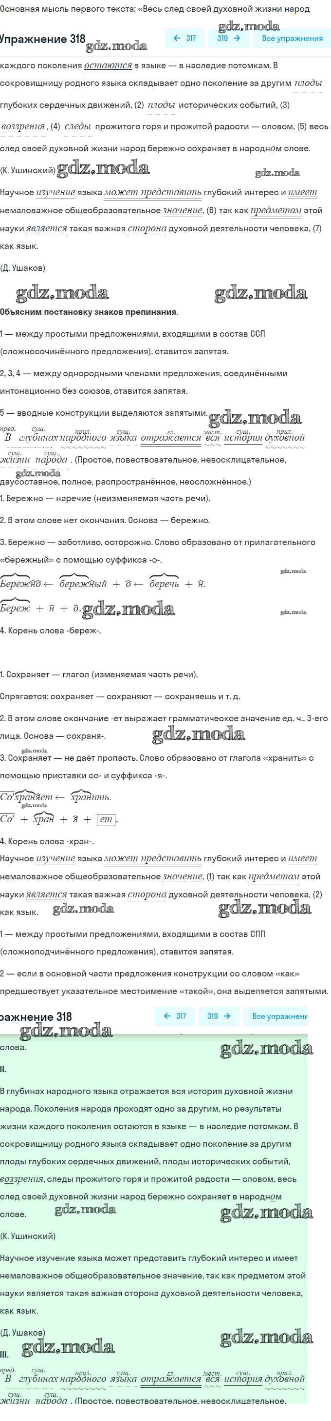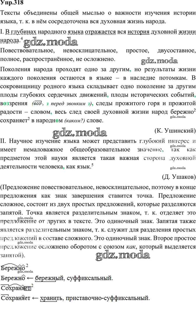 ОТВЕТ на задание № 318 Учебник по Русскому языку 9 класс Бархударов