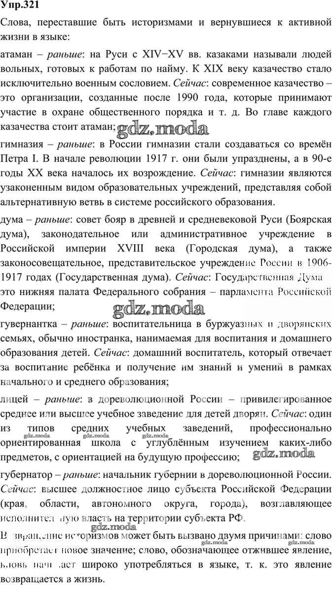 ОТВЕТ на задание № 321 Учебник по Русскому языку 9 класс Бархударов