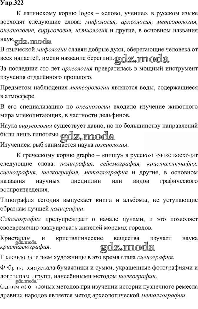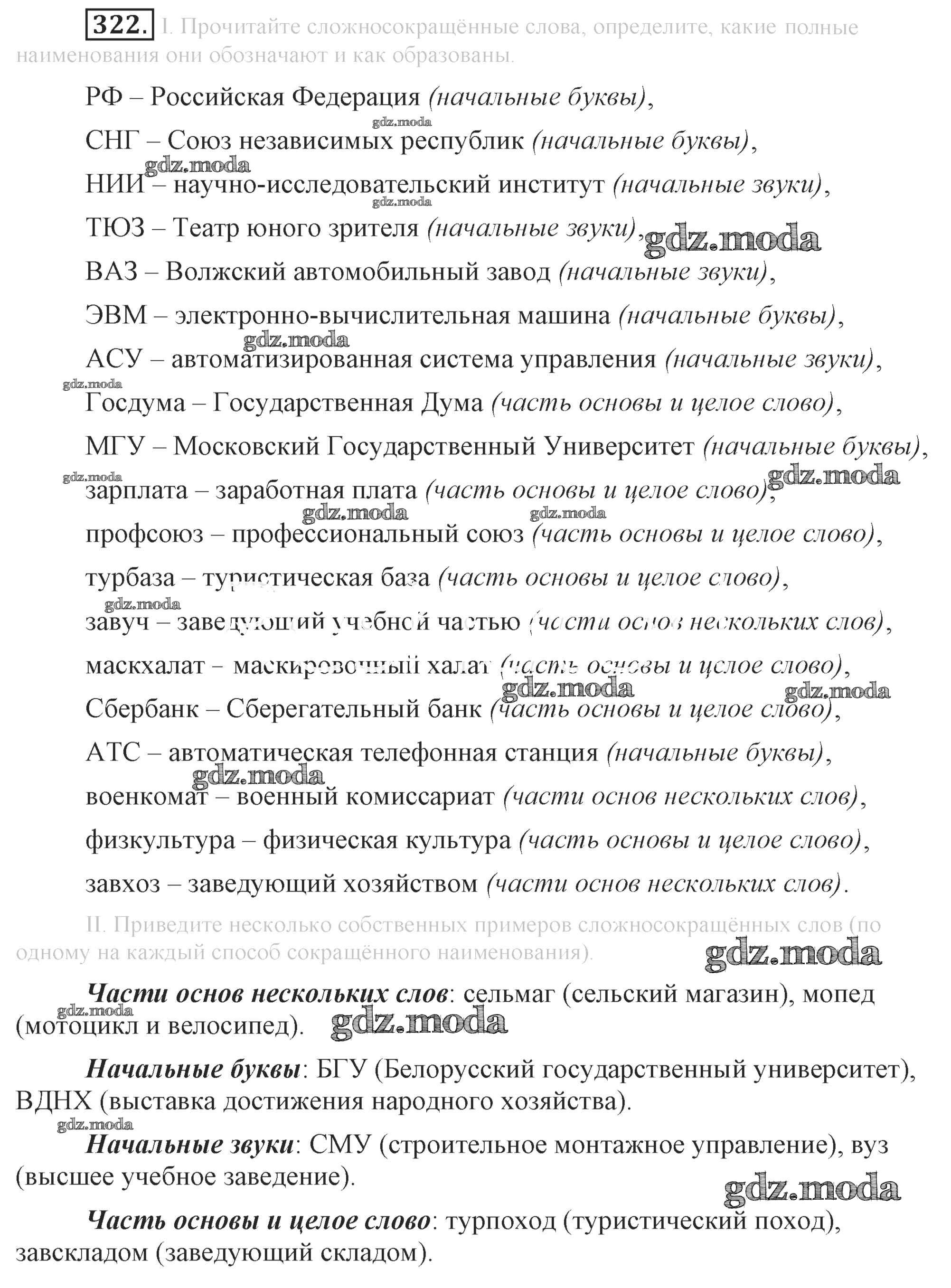 ОТВЕТ на задание № 322 Учебник по Русскому языку 9 класс Бархударов