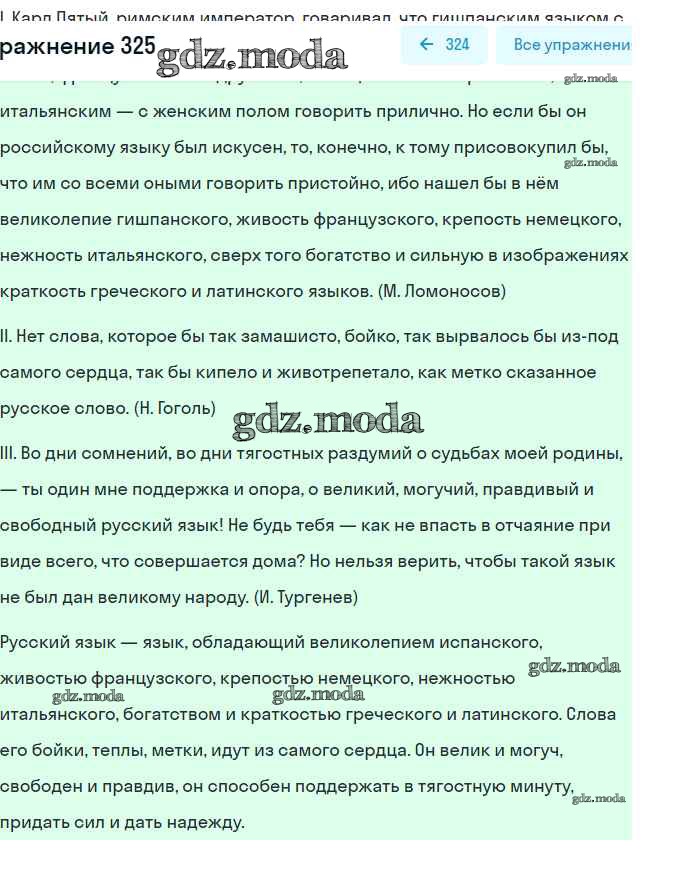 ОТВЕТ на задание № 325 Учебник по Русскому языку 9 класс Бархударов