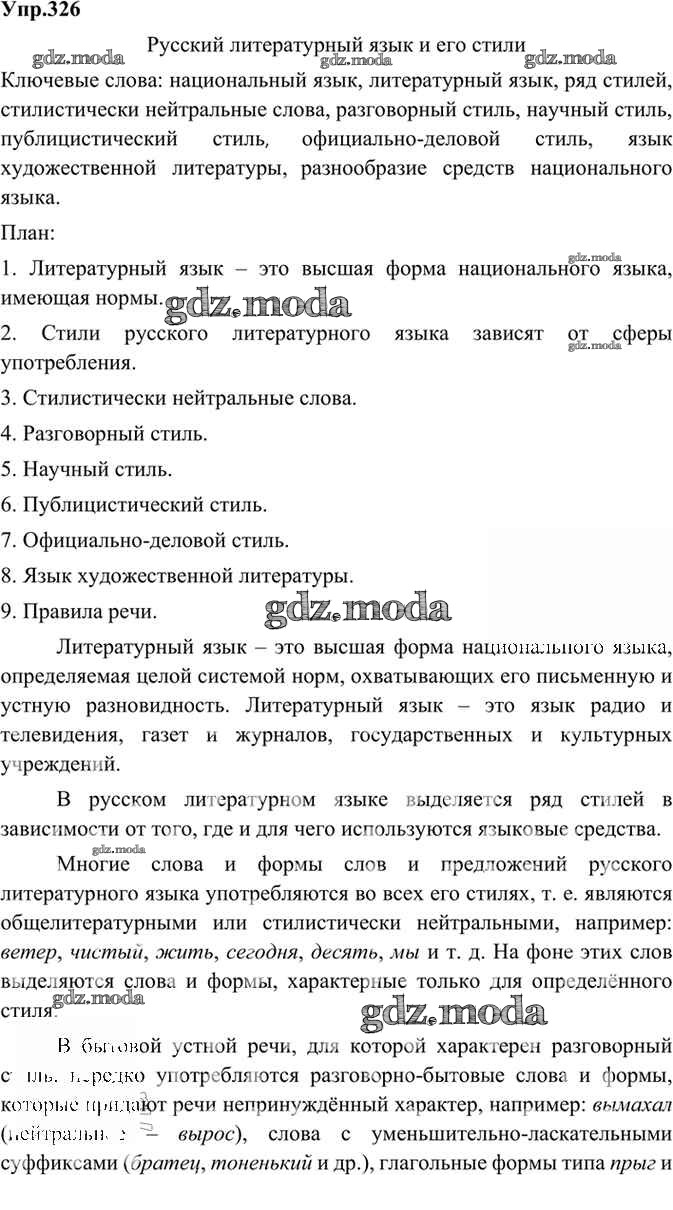 ОТВЕТ на задание № 326 Учебник по Русскому языку 9 класс Бархударов