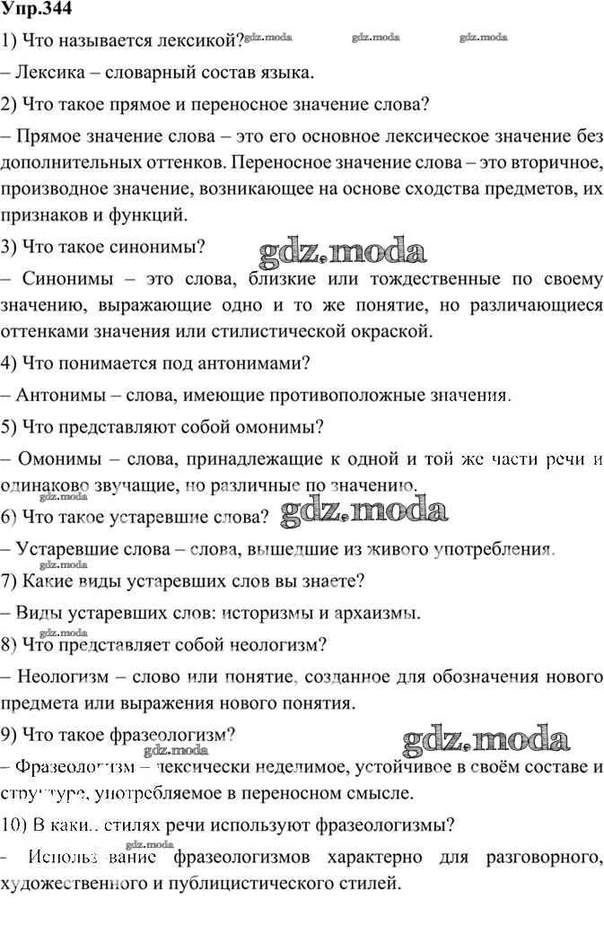 ОТВЕТ на задание № 344 Учебник по Русскому языку 9 класс Бархударов