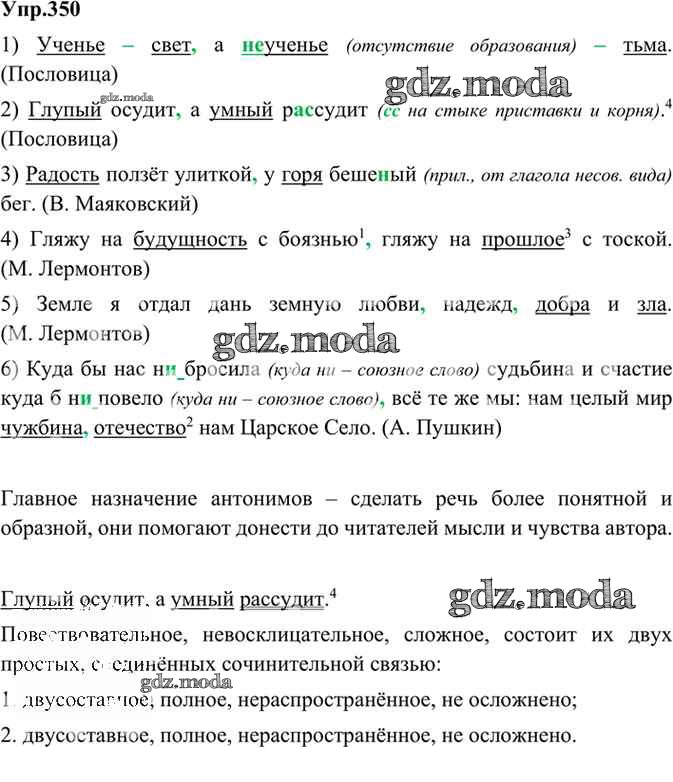 ОТВЕТ на задание № 350 Учебник по Русскому языку 9 класс Бархударов