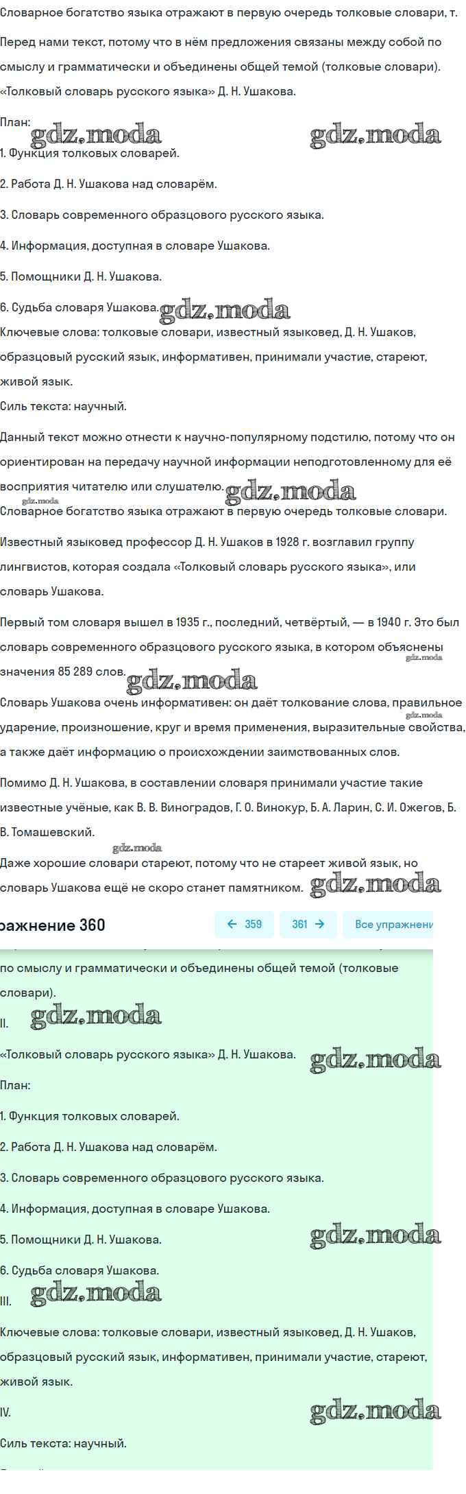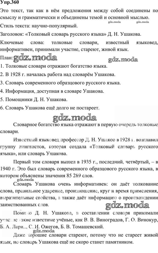 ОТВЕТ на задание № 360 Учебник по Русскому языку 9 класс Бархударов