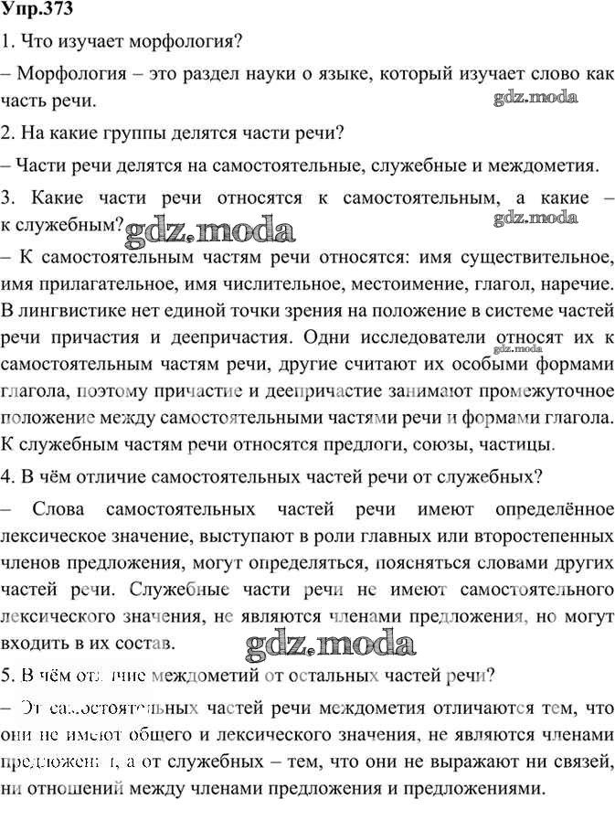ОТВЕТ на задание № 373 Учебник по Русскому языку 9 класс Бархударов