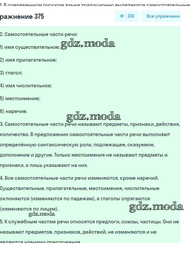 ОТВЕТ на задание № 375 Учебник по Русскому языку 9 класс Бархударов