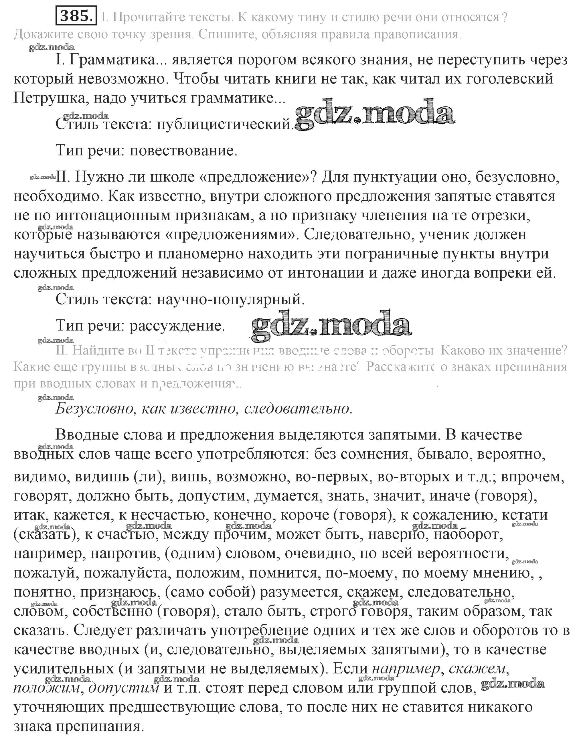ОТВЕТ на задание № 385 Учебник по Русскому языку 9 класс Бархударов