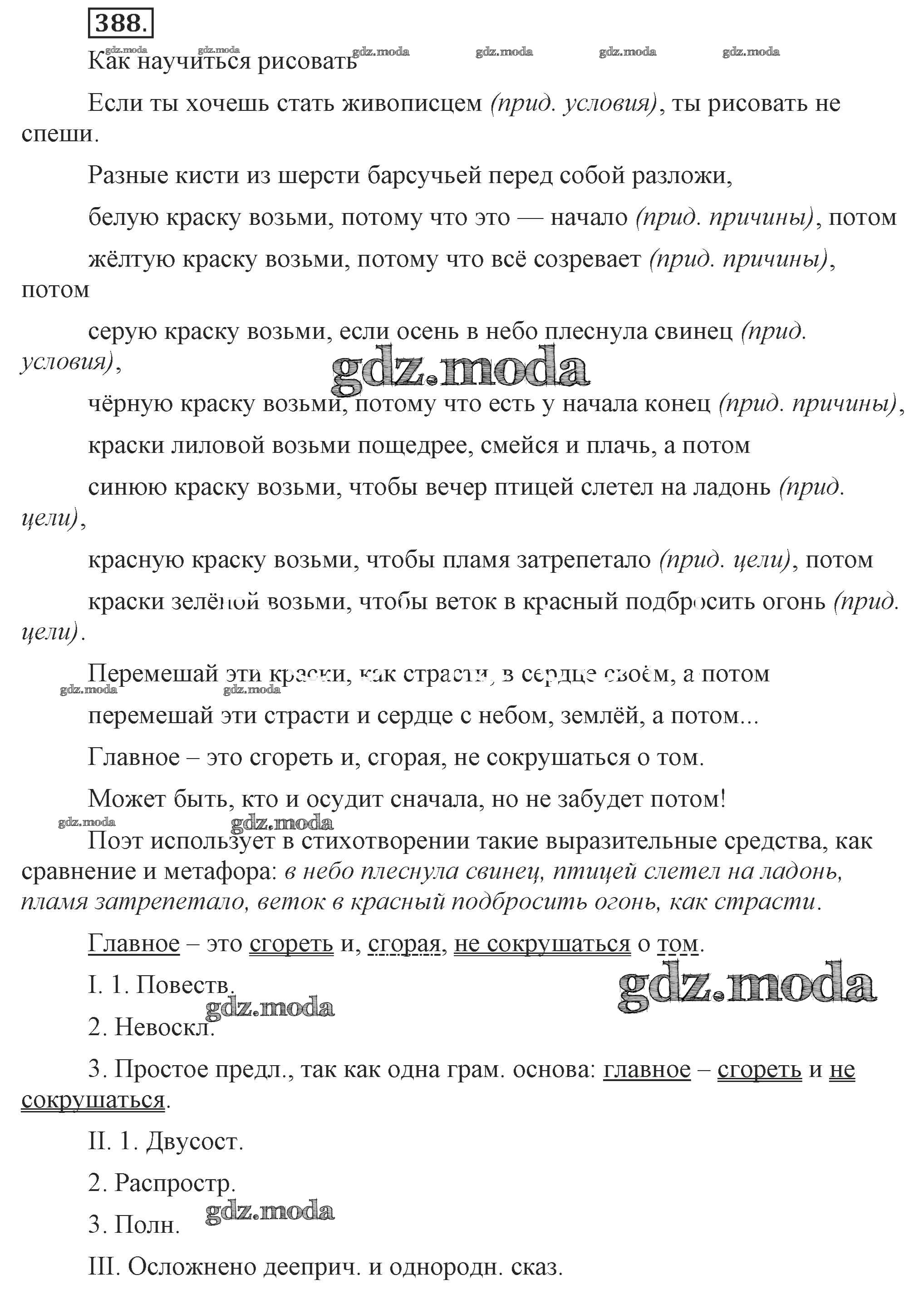 ОТВЕТ на задание № 388 Учебник по Русскому языку 9 класс Бархударов