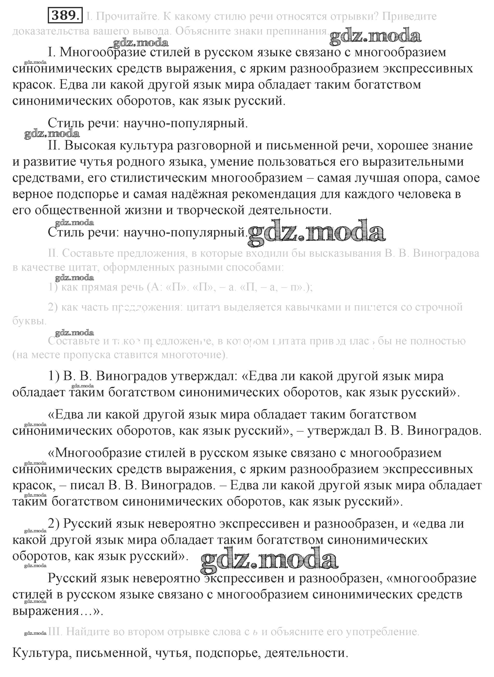 ОТВЕТ на задание № 389 Учебник по Русскому языку 9 класс Бархударов