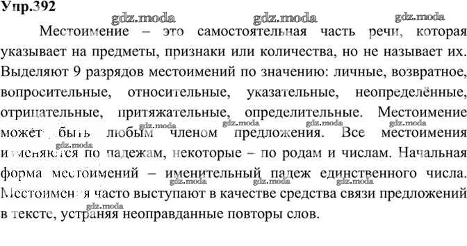 ОТВЕТ на задание № 392 Учебник по Русскому языку 9 класс Бархударов
