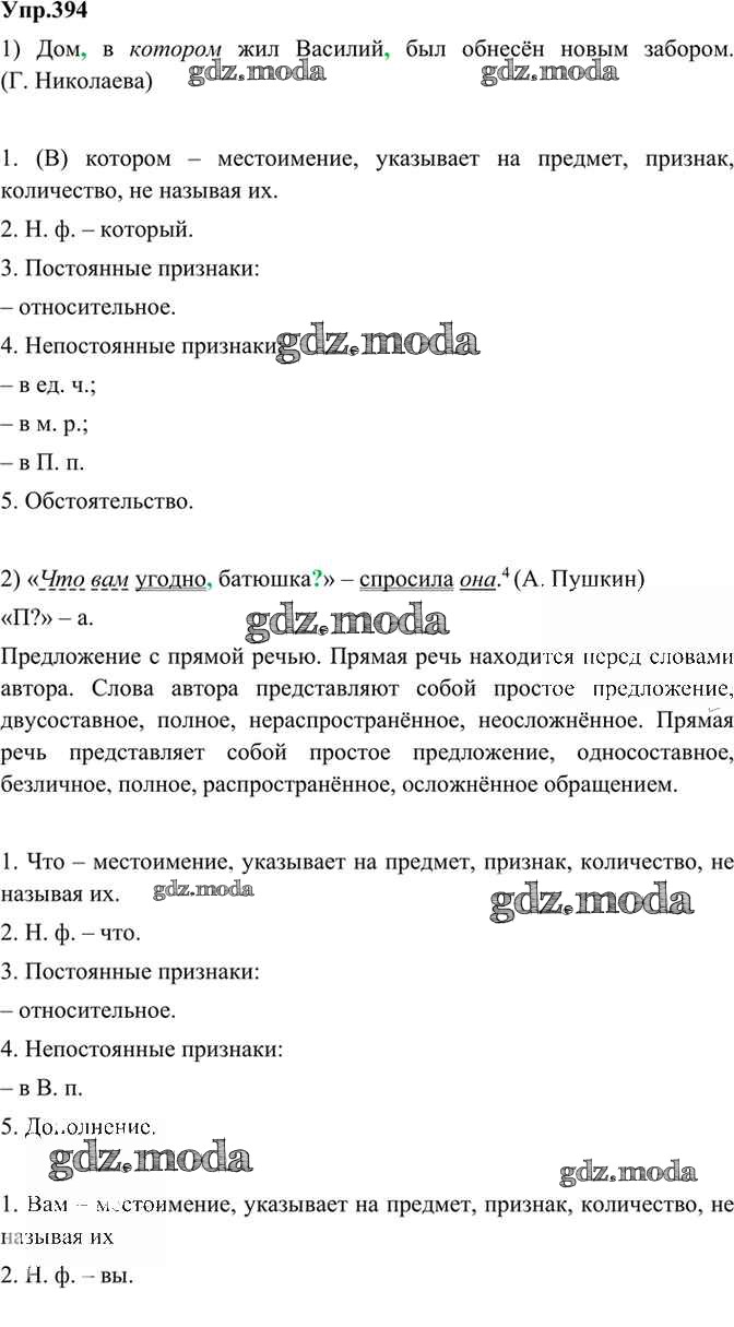 ОТВЕТ на задание № 394 Учебник по Русскому языку 9 класс Бархударов