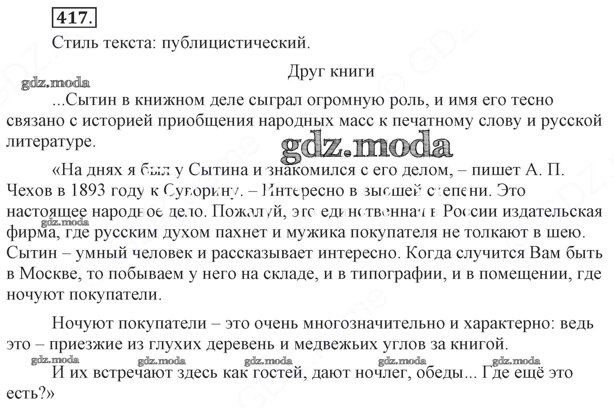 ОТВЕТ на задание № 417 Учебник по Русскому языку 9 класс Бархударов