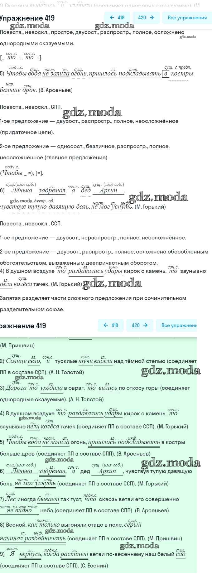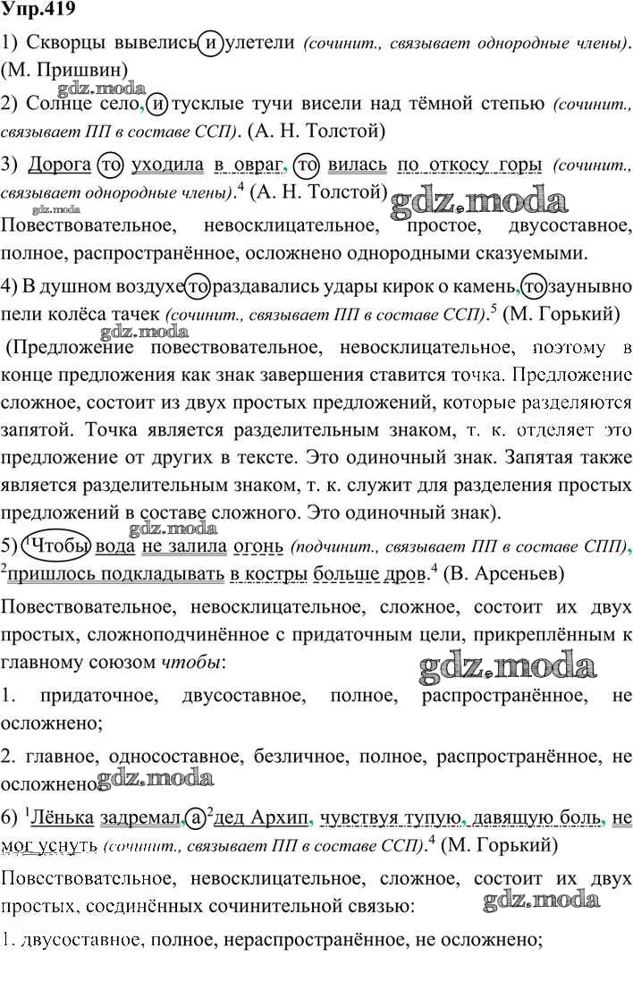 ОТВЕТ на задание № 419 Учебник по Русскому языку 9 класс Бархударов