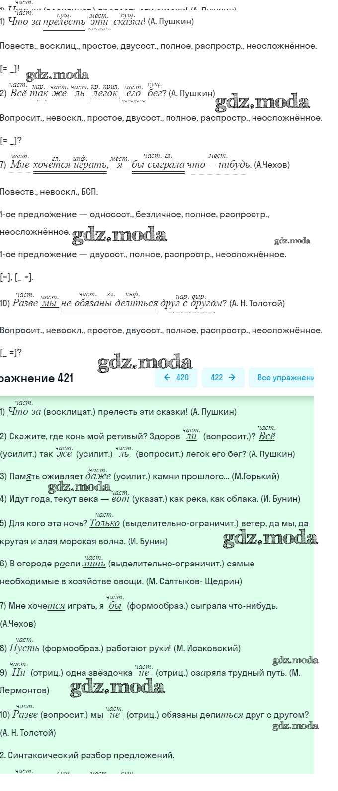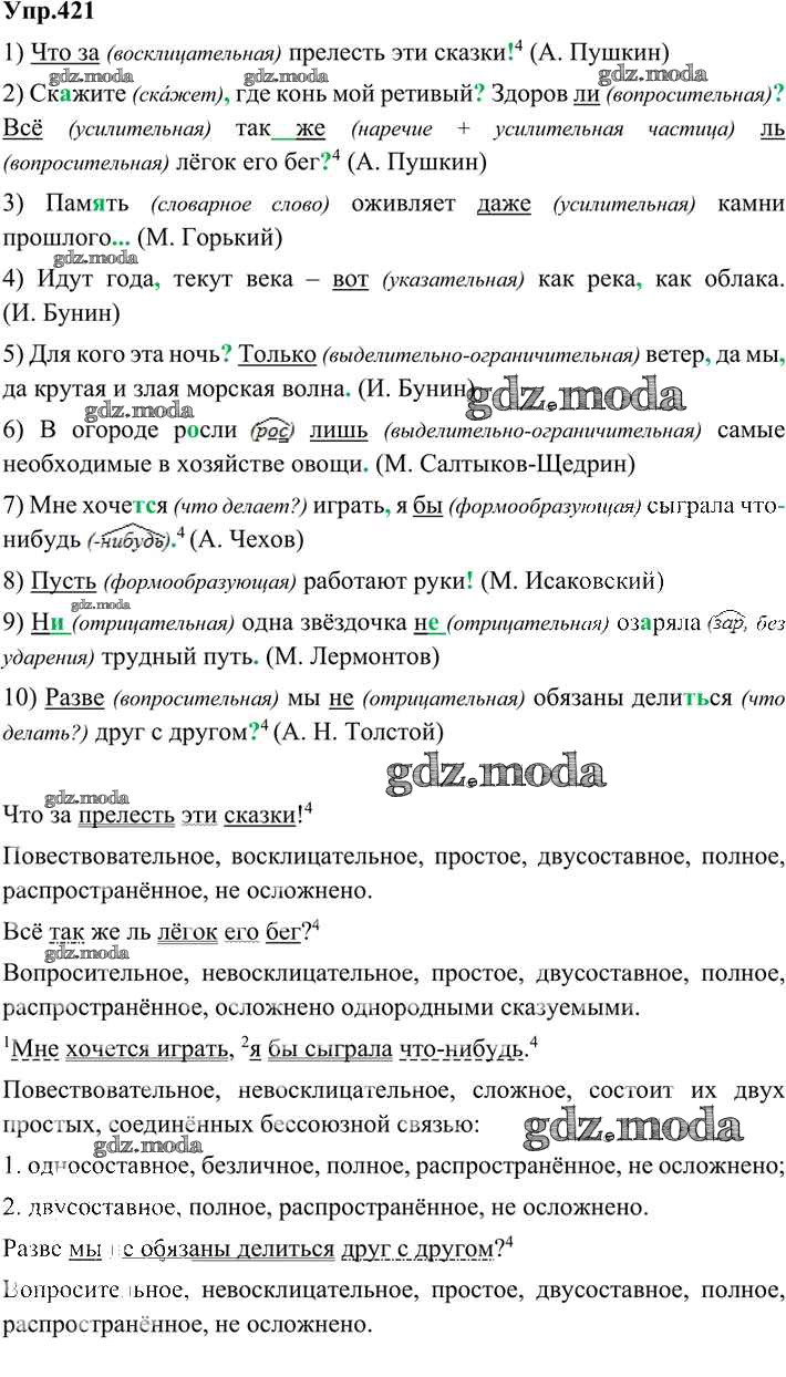 ОТВЕТ на задание № 421 Учебник по Русскому языку 9 класс Бархударов