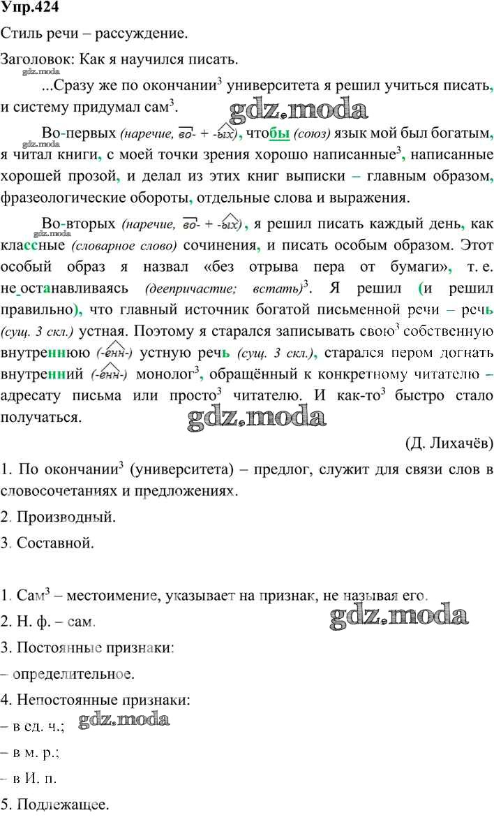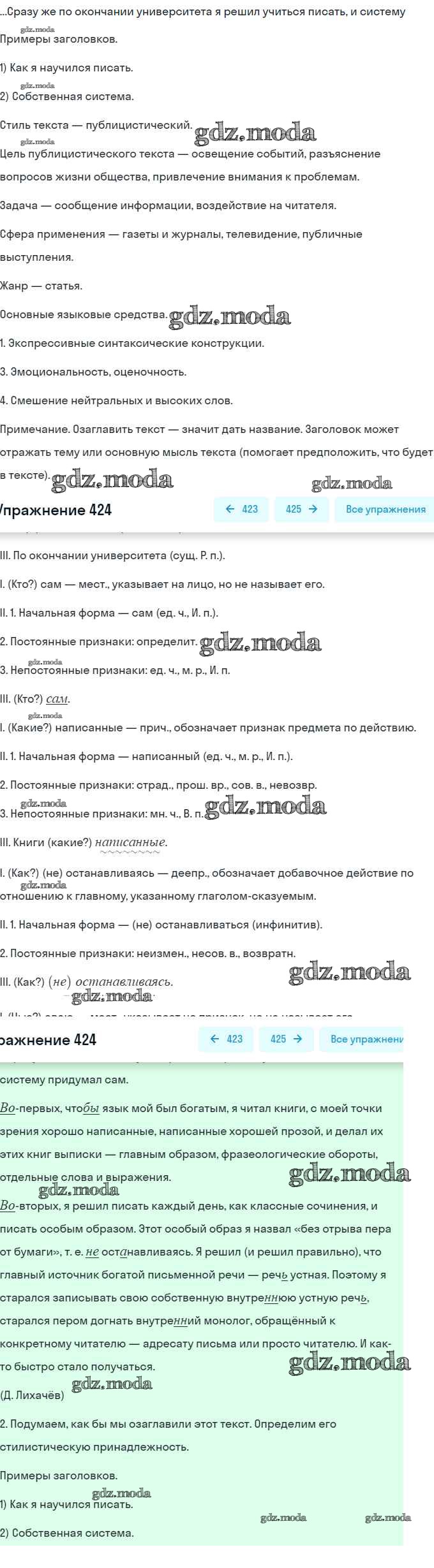 ОТВЕТ на задание № 424 Учебник по Русскому языку 9 класс Бархударов