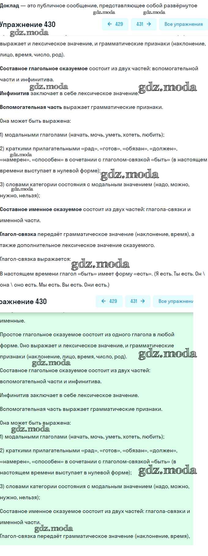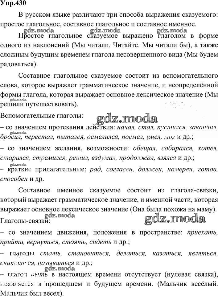 ОТВЕТ на задание № 430 Учебник по Русскому языку 9 класс Бархударов