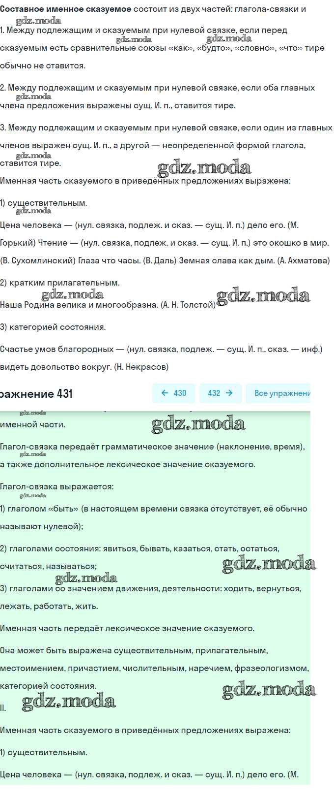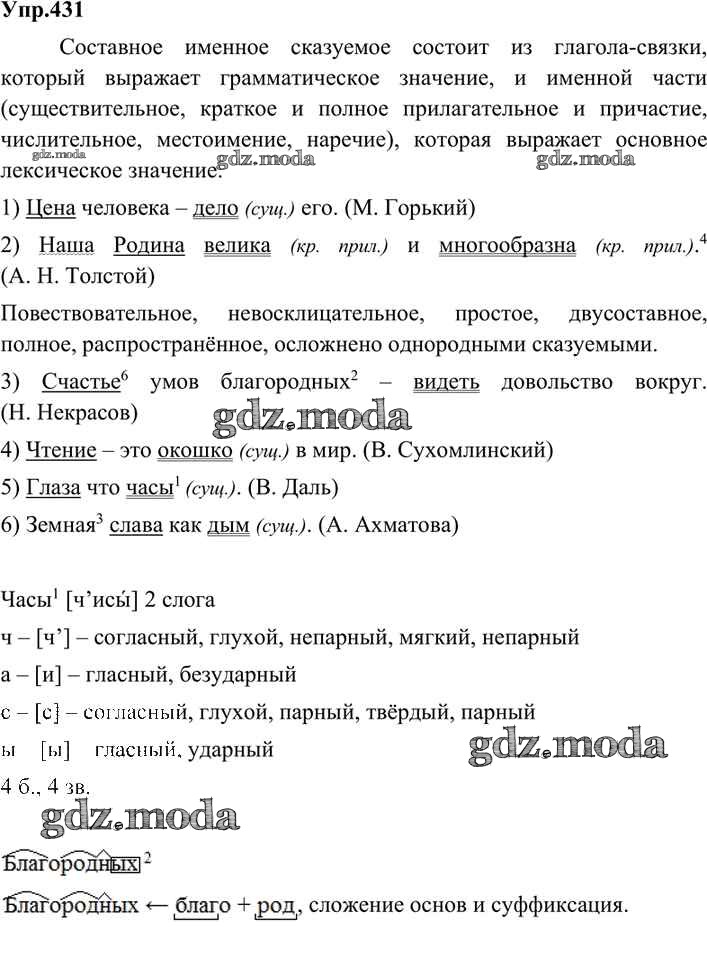 ОТВЕТ на задание № 431 Учебник по Русскому языку 9 класс Бархударов