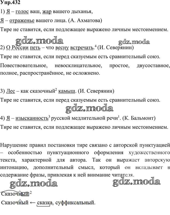 ГДЗ решение к заданию № 432 Русский язык 9 класс Бархударов С.Г. Просвещение, Просвещение 2011, 2019 ФГОС бесплатно на гдз.мода!