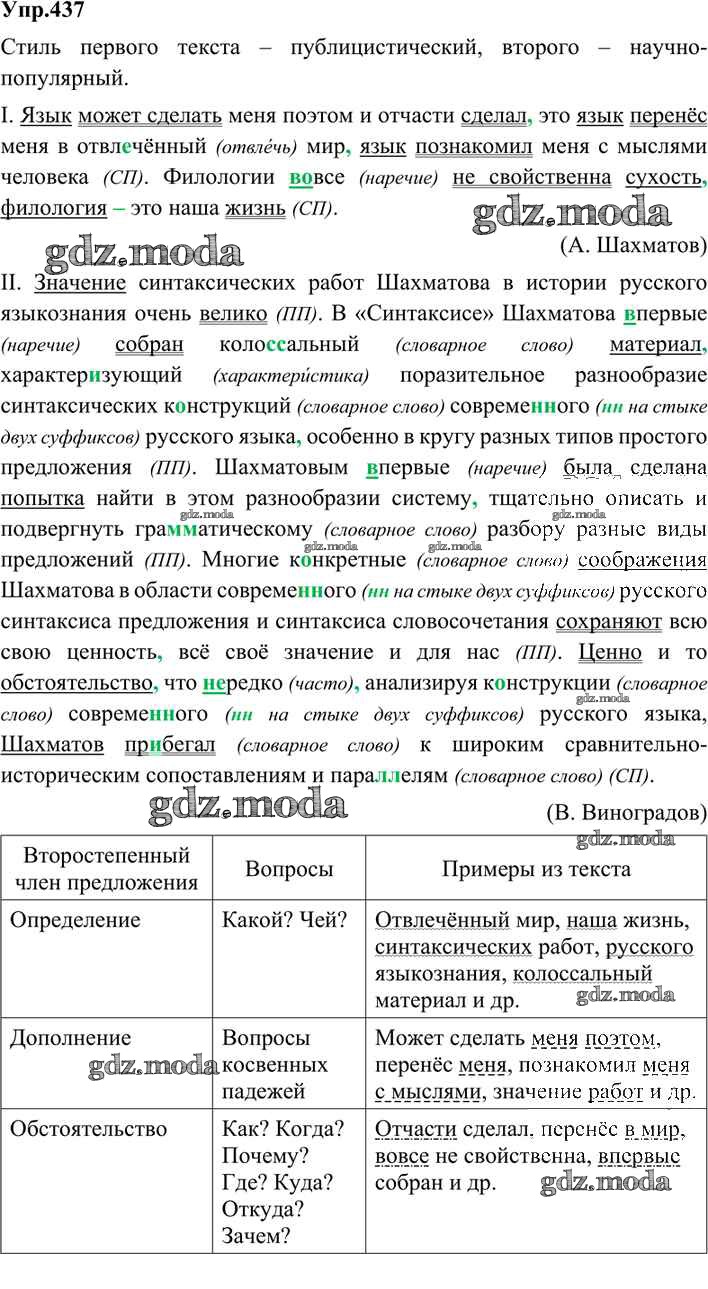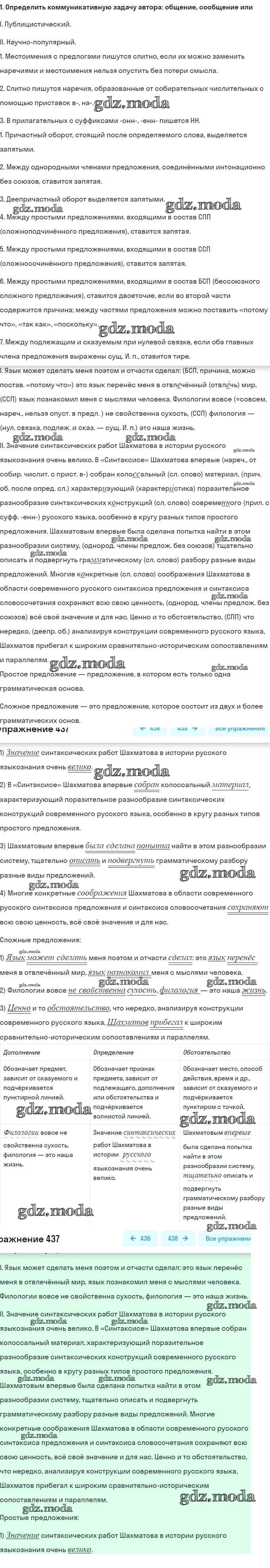 ГДЗ решение к заданию № 437 Русский язык 9 класс Бархударов С.Г. Просвещение, Просвещение 2011, 2019 ФГОС бесплатно на гдз.мода!