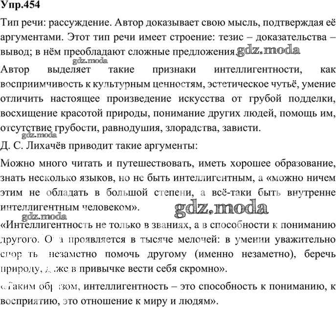 ОТВЕТ на задание № 454 Учебник по Русскому языку 9 класс Бархударов