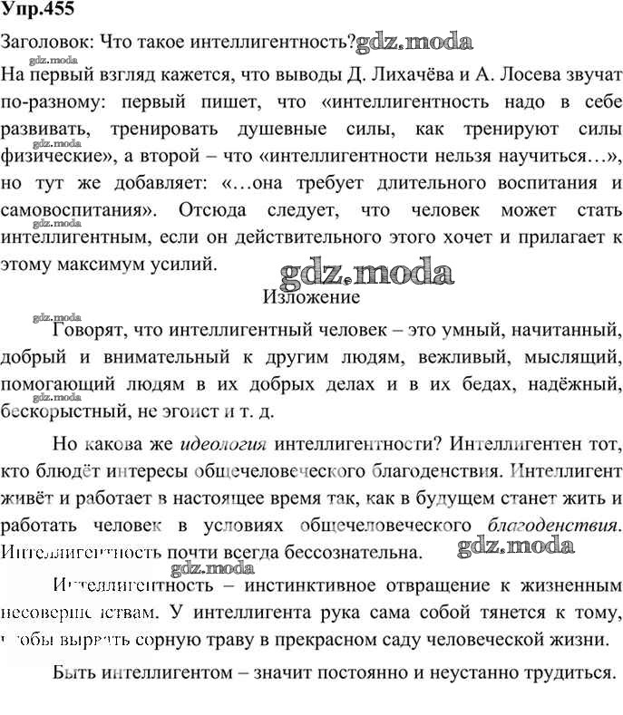 ОТВЕТ на задание № 455 Учебник по Русскому языку 9 класс Бархударов