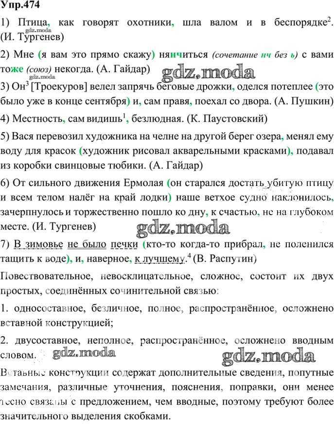 ОТВЕТ на задание № 474 Учебник по Русскому языку 9 класс Бархударов
