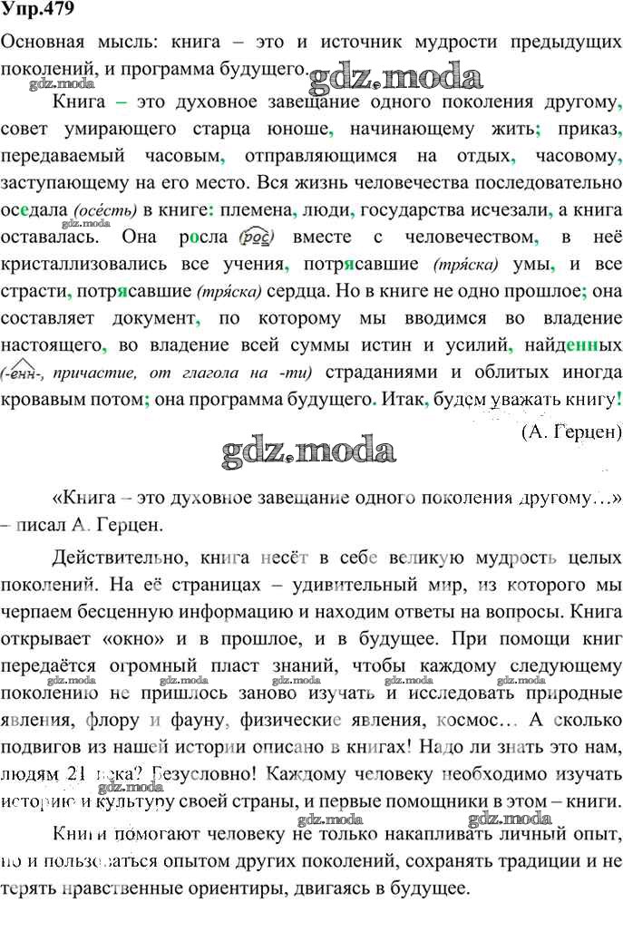 ОТВЕТ на задание № 479 Учебник по Русскому языку 9 класс Бархударов
