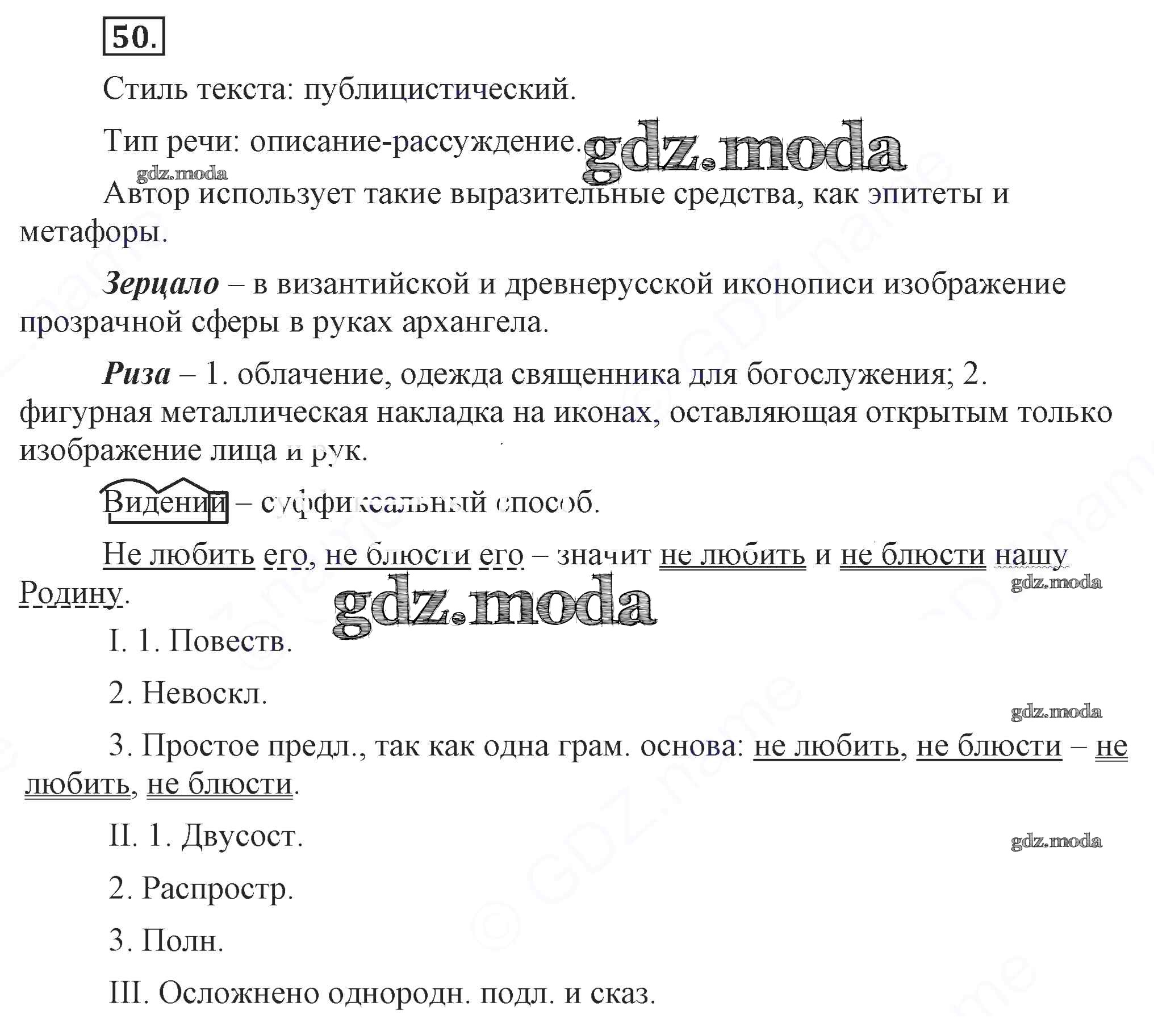 ОТВЕТ на задание № 50 Учебник по Русскому языку 9 класс Бархударов