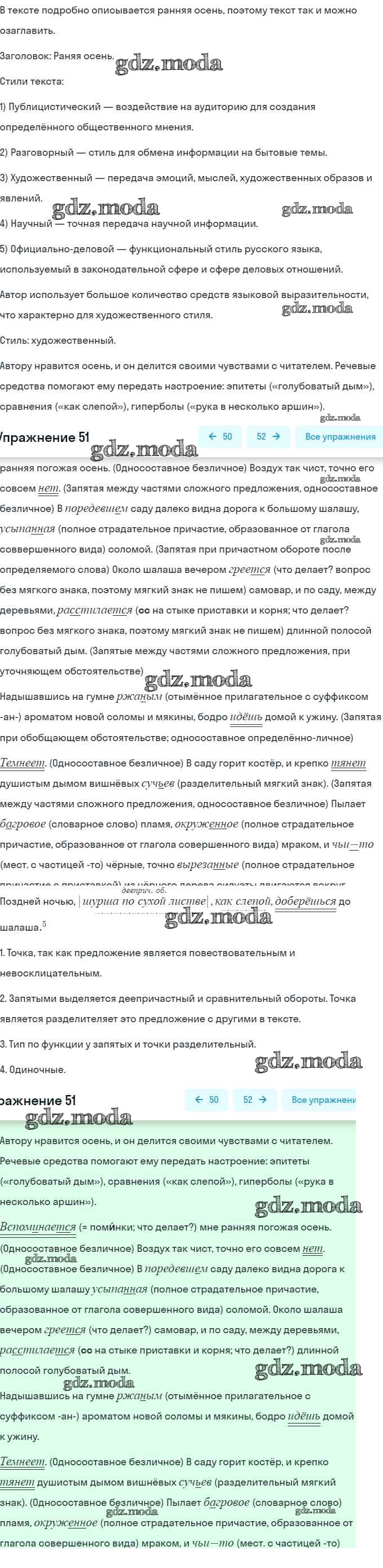 ОТВЕТ на задание № 51 Учебник по Русскому языку 9 класс Бархударов