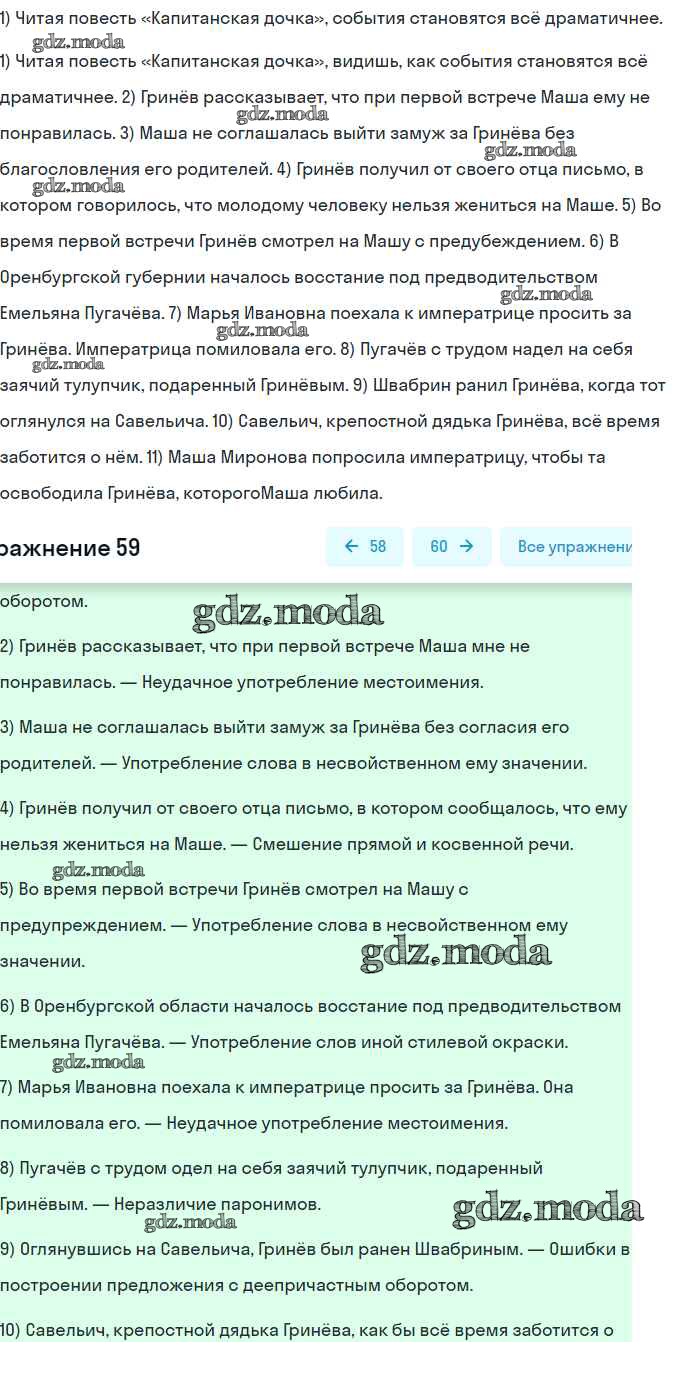ОТВЕТ на задание № 59 Учебник по Русскому языку 9 класс Бархударов