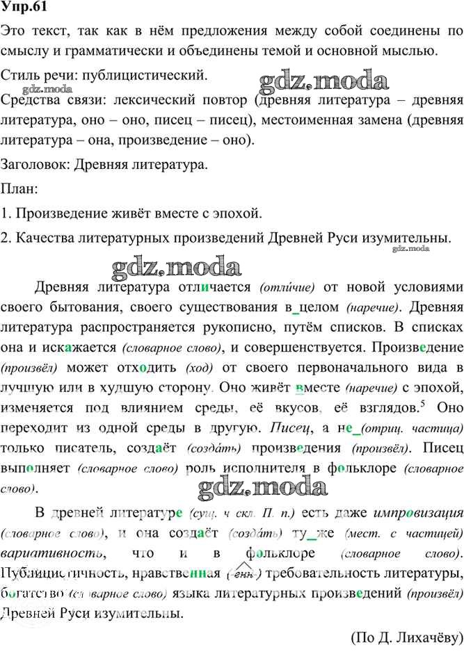 ОТВЕТ на задание № 61 Учебник по Русскому языку 9 класс Бархударов