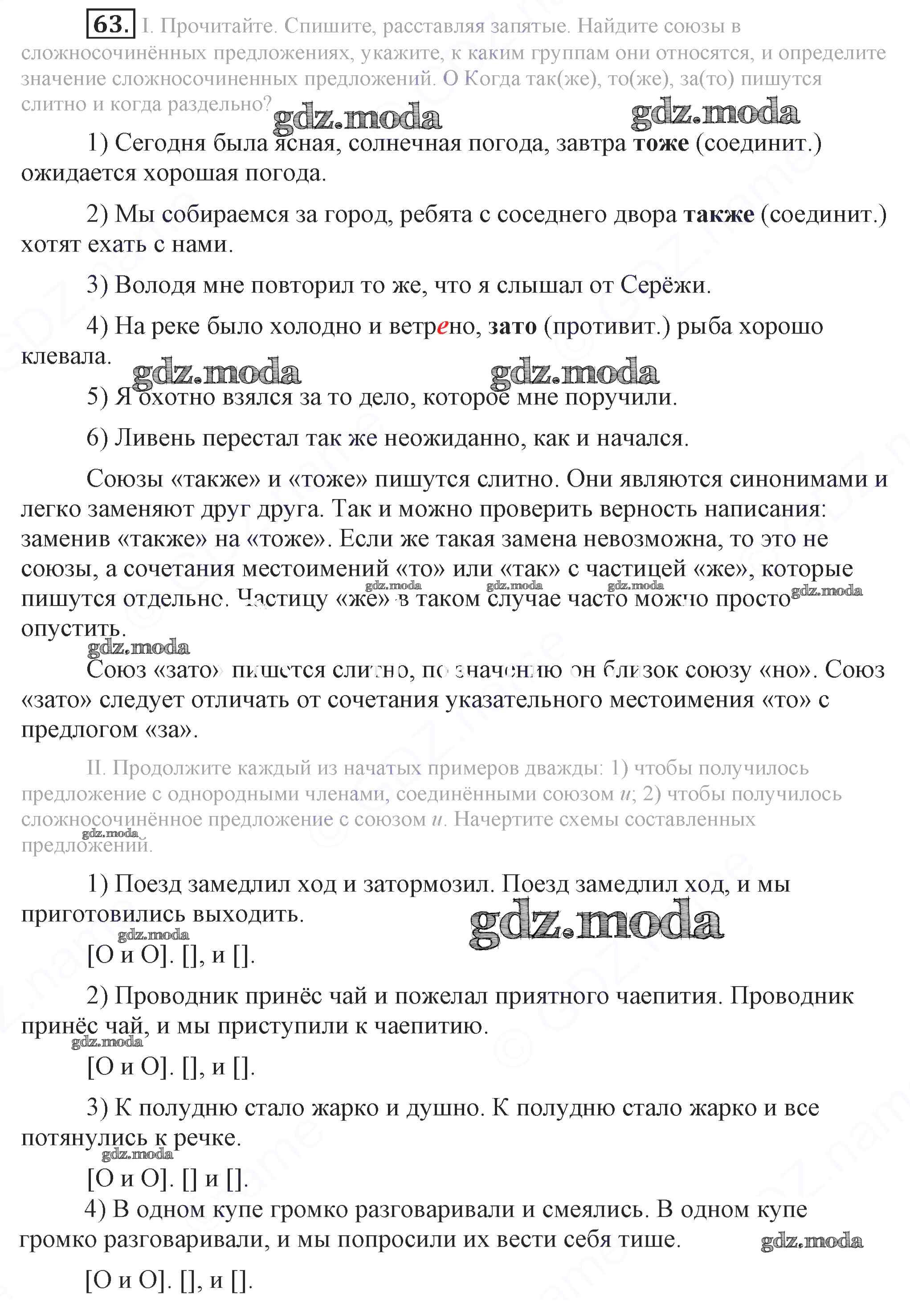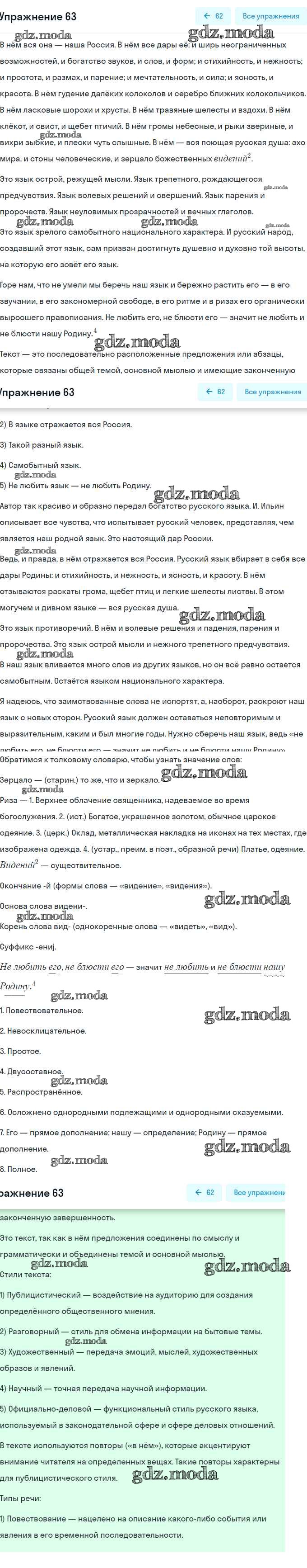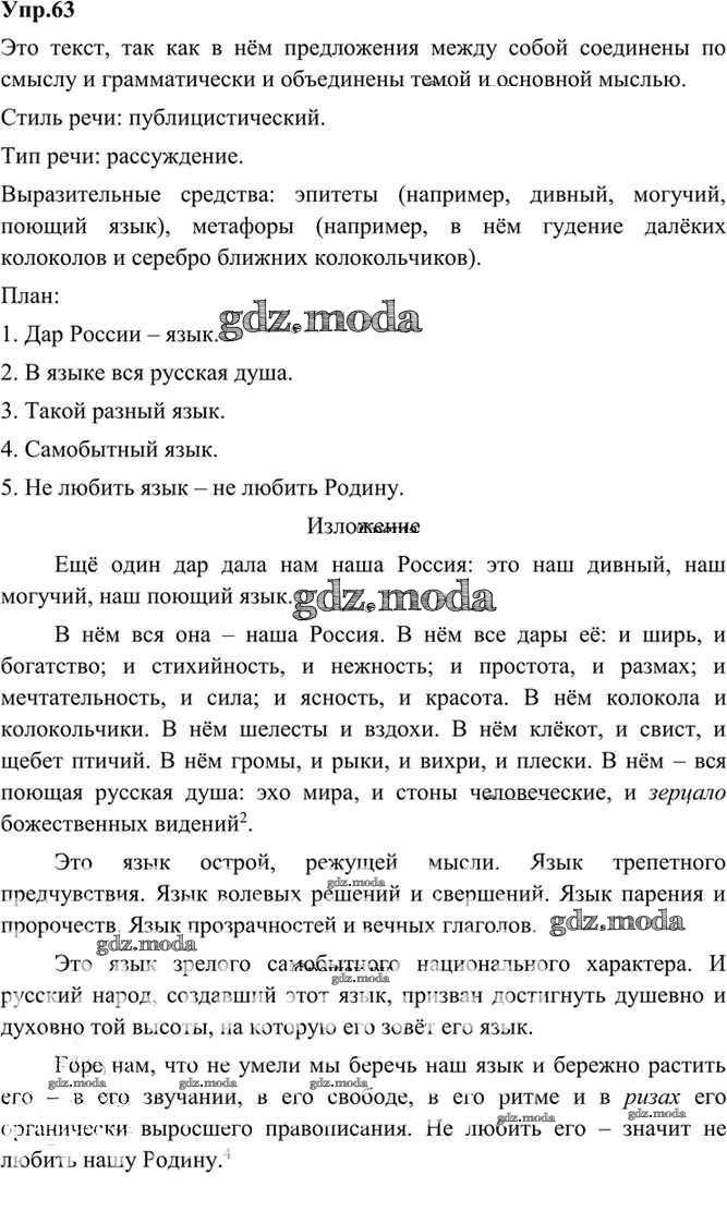 ОТВЕТ на задание № 63 Учебник по Русскому языку 9 класс Бархударов