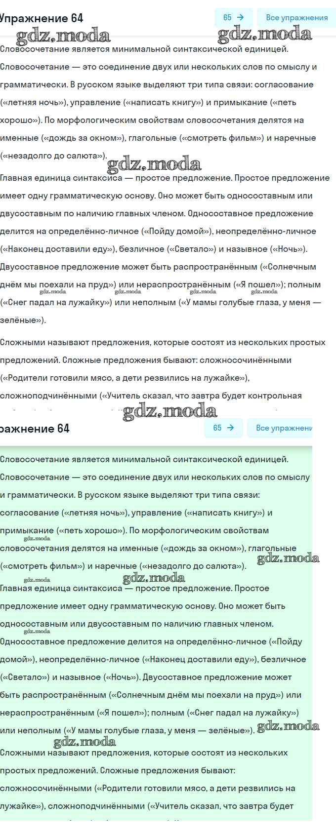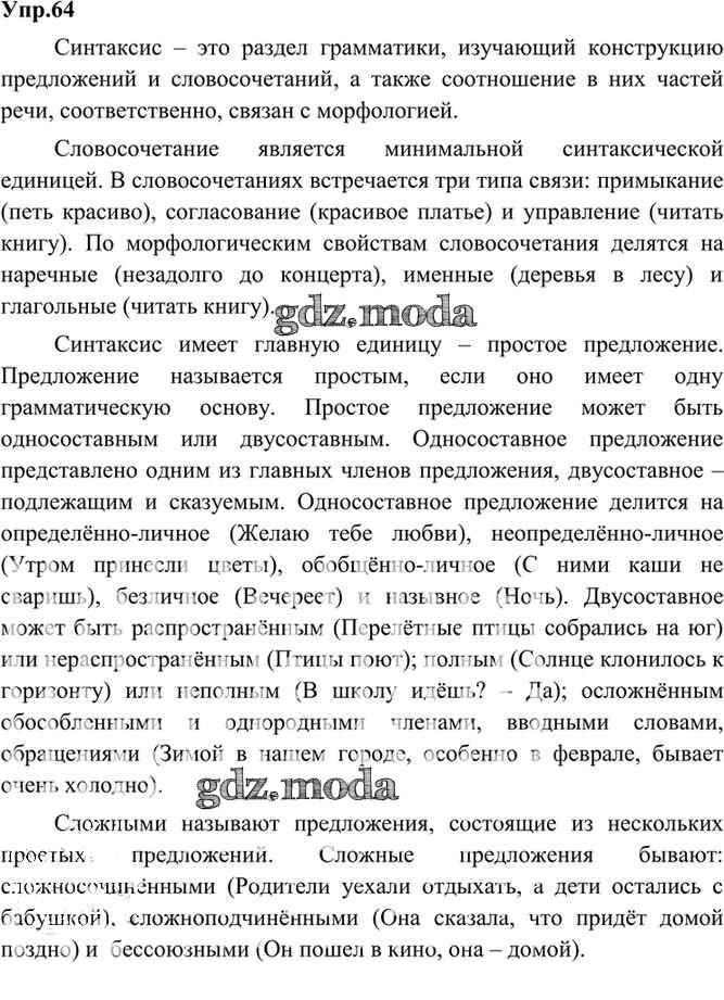 ОТВЕТ на задание № 64 Учебник по Русскому языку 9 класс Бархударов